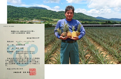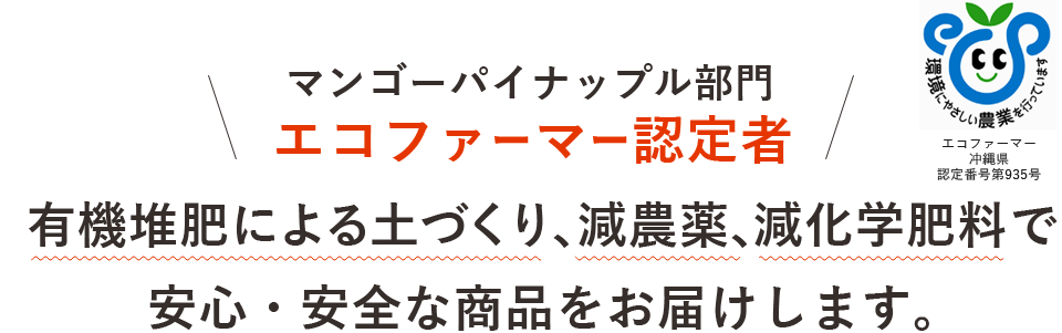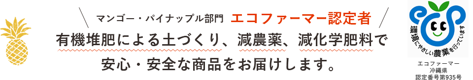 皆様に安心して食べていただけるように、石垣島のパイン・マンゴー農園「フォーユー」は、土作り、農薬や肥料の低減を一体的に行い、環境にやさしいマンゴー・パイナップルを目指しています。