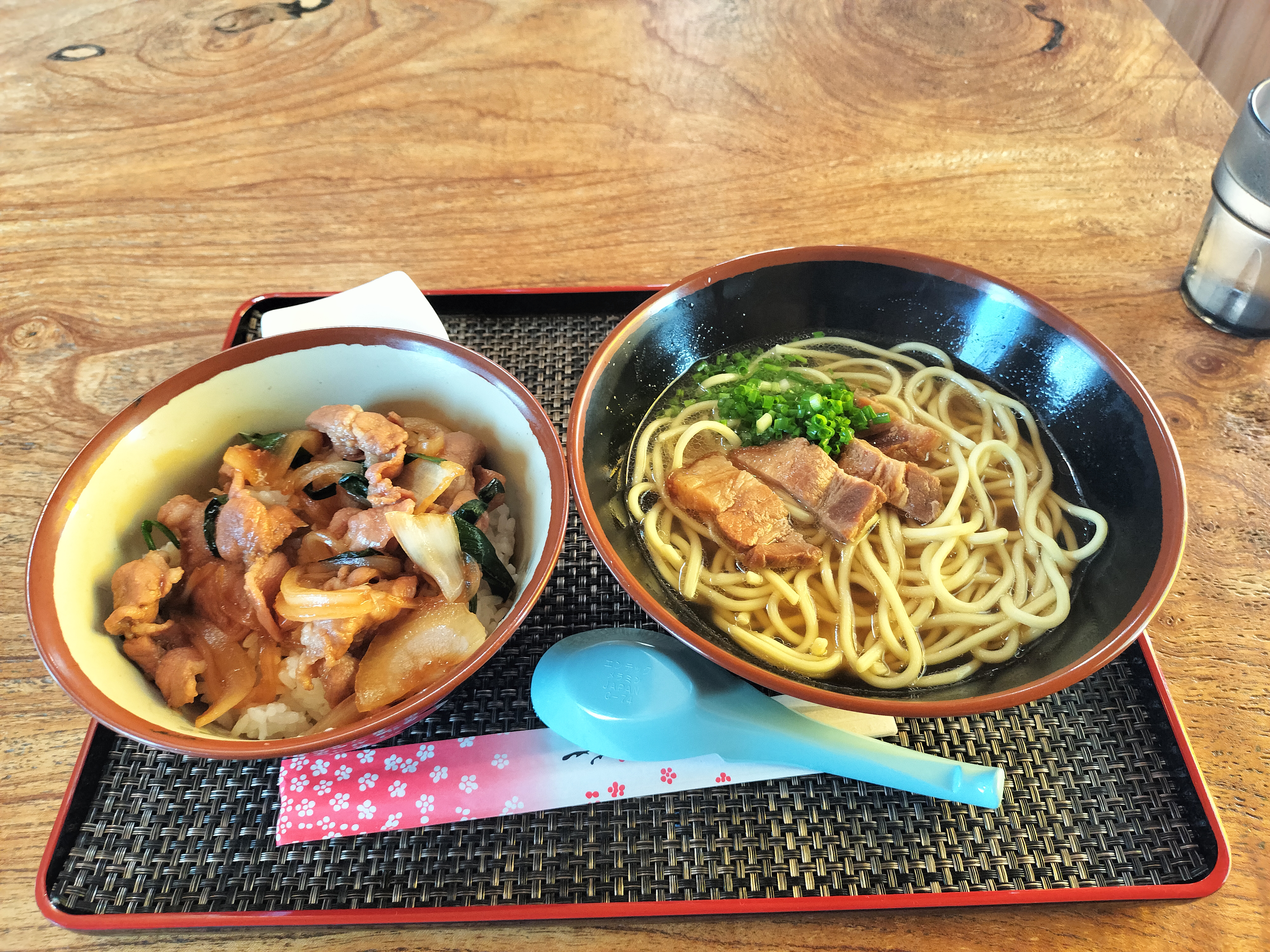 今日は近くにあります、「アンパル食堂」さんで昼食です。メニューはミニ豚丼と沖縄そばのセット物。味もボリュームも満足の料理でした。さて、午後からも仕事頑張りますか。